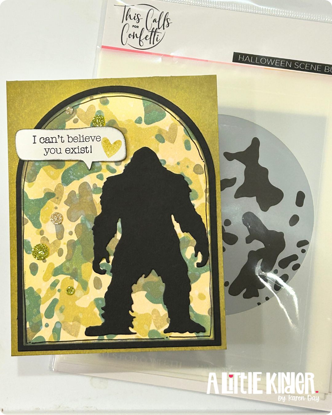 This Halloween Scene Builder stencil was the product I chose to highlight for my card this month — and it completely inspired the Bigfoot camo vibe I ended up running with. It’s technically meant for spooky moonlit scenes… but the moment I saw it, I couldn’t unsee camo. And that’s the beauty of these tools — you can totally twist them to match your imagination.